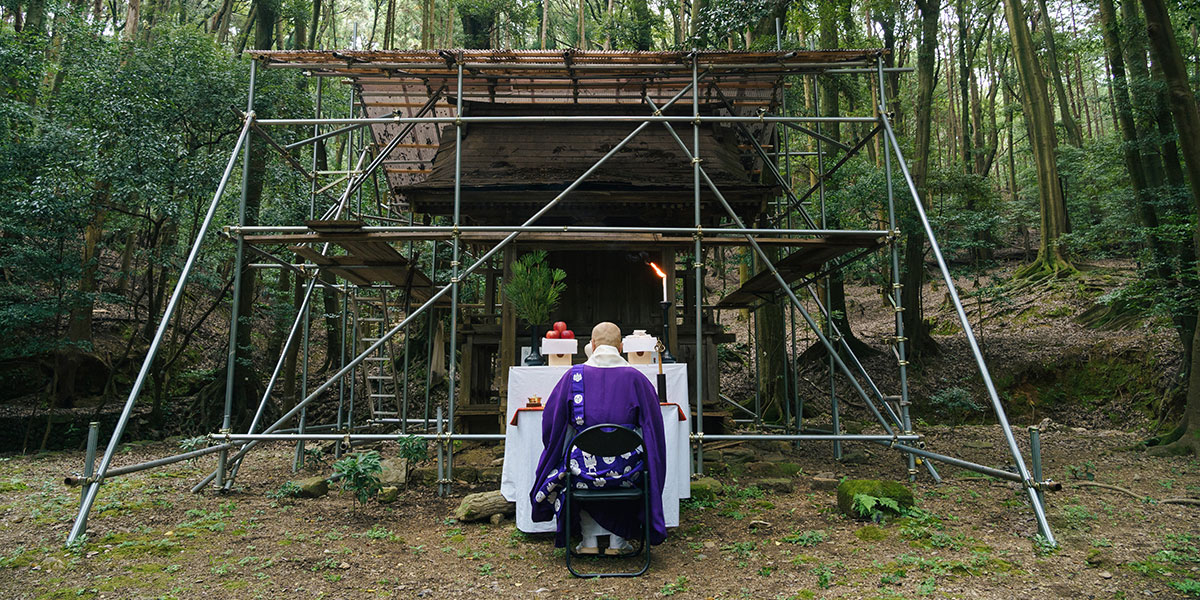 『鳥獣草木の声や響きはすべて仏のことば』と感じられるような森厳なる伽藍に身を置き、自分自身を見つめ、生きていることの素晴らしさを再発見する、そんな空間、伽藍を無限の未来へつないで行きたいと考え、安祥寺発祥の原点とも言える聖域である「鎮守 青龍殿」の修復と周辺の整備を行う事といたしました。